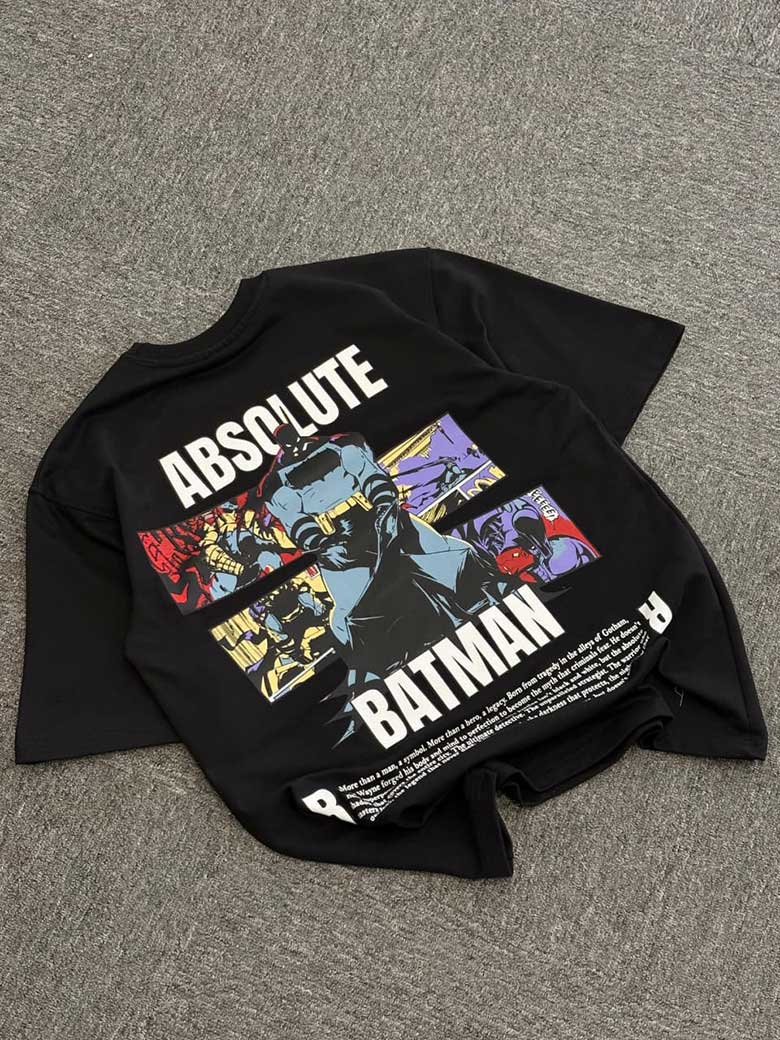 Unleash your inner hero with the “Absolute Batman” oversized t-shirt. Featuring a bold comic-style graphic, this tee blends iconic character energy with modern streetwear aesthetics. Designed for comfort and impact, it’s the perfect piece for everyday wear with a statement edge.